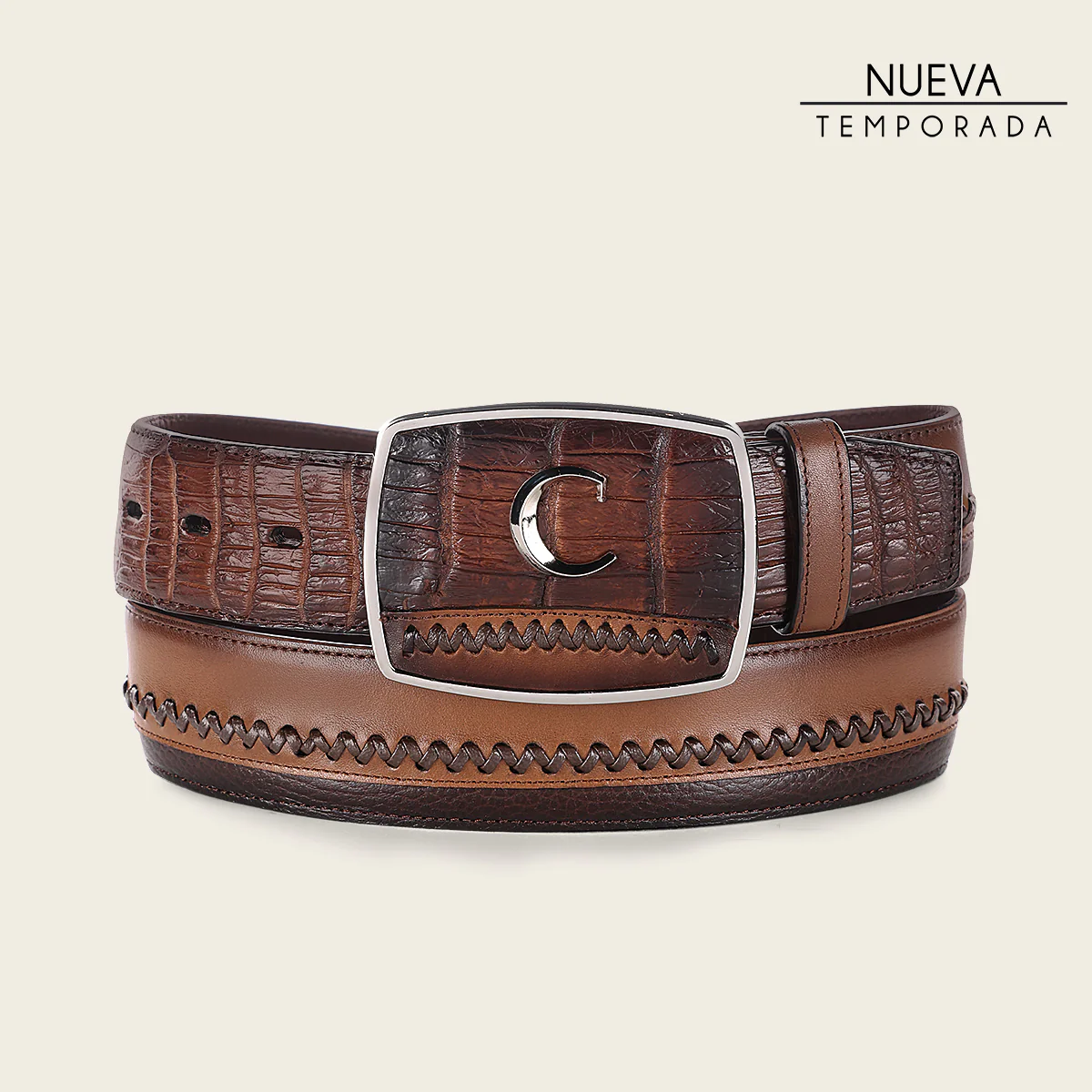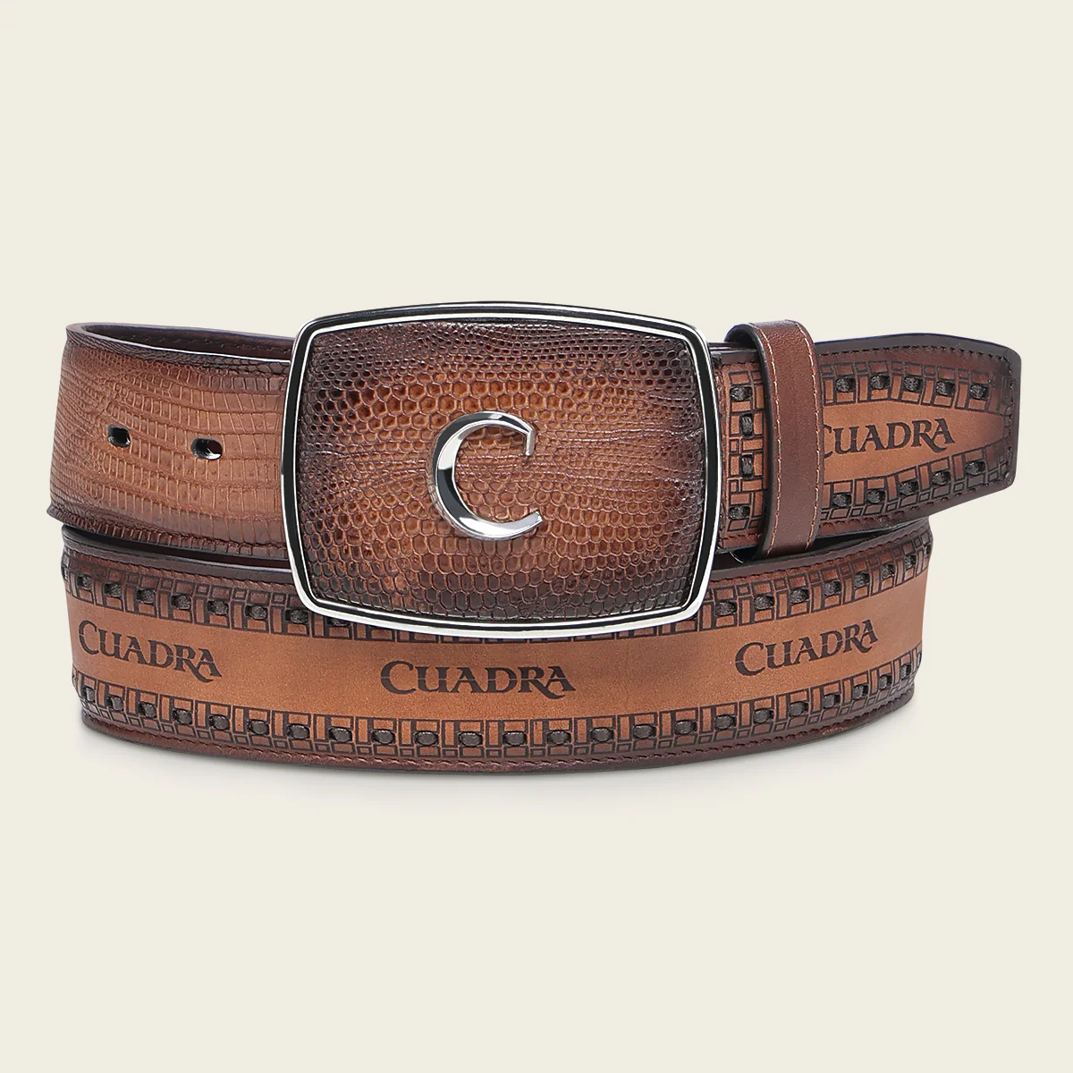 Cinturón tradicional en piel genuina de lizard para caballero