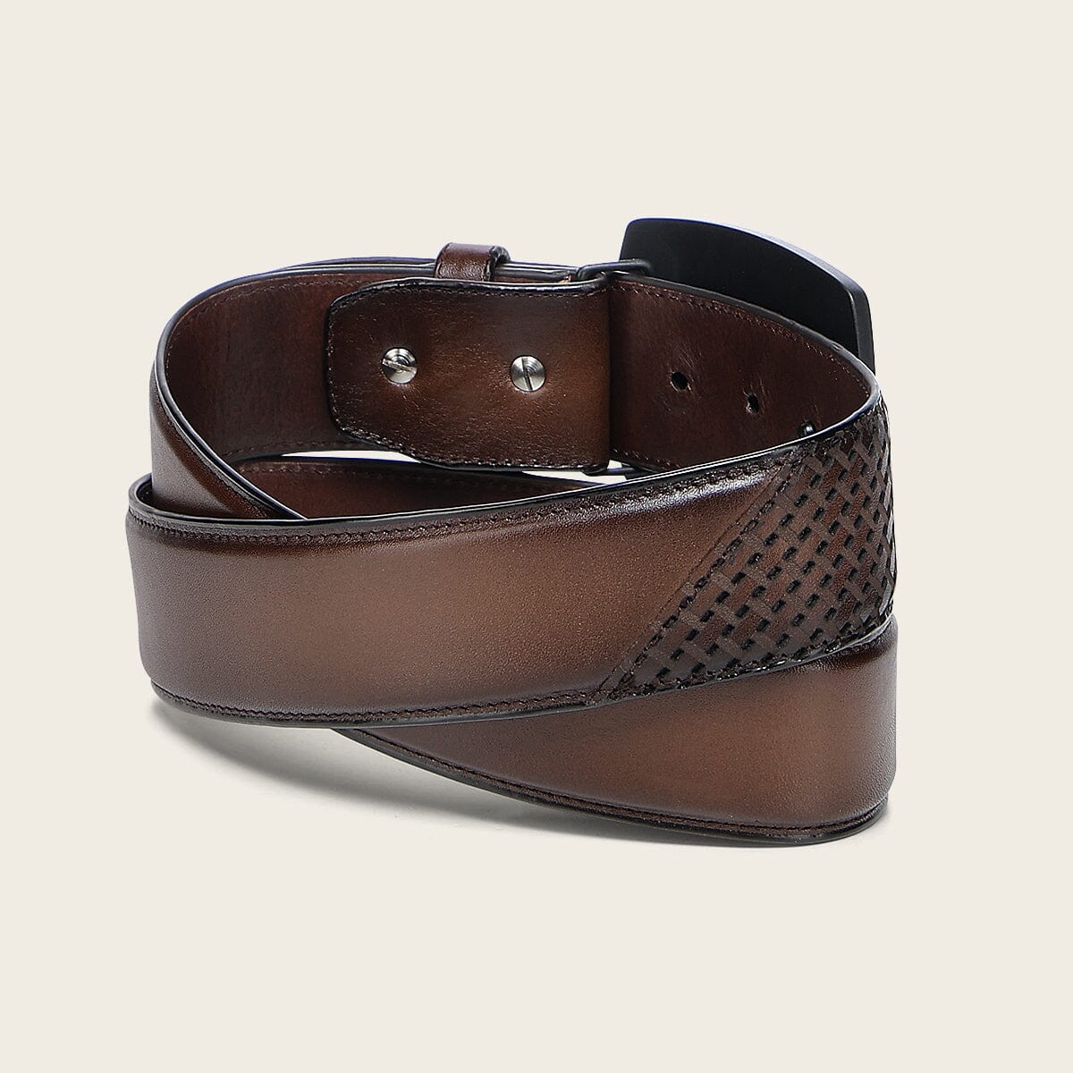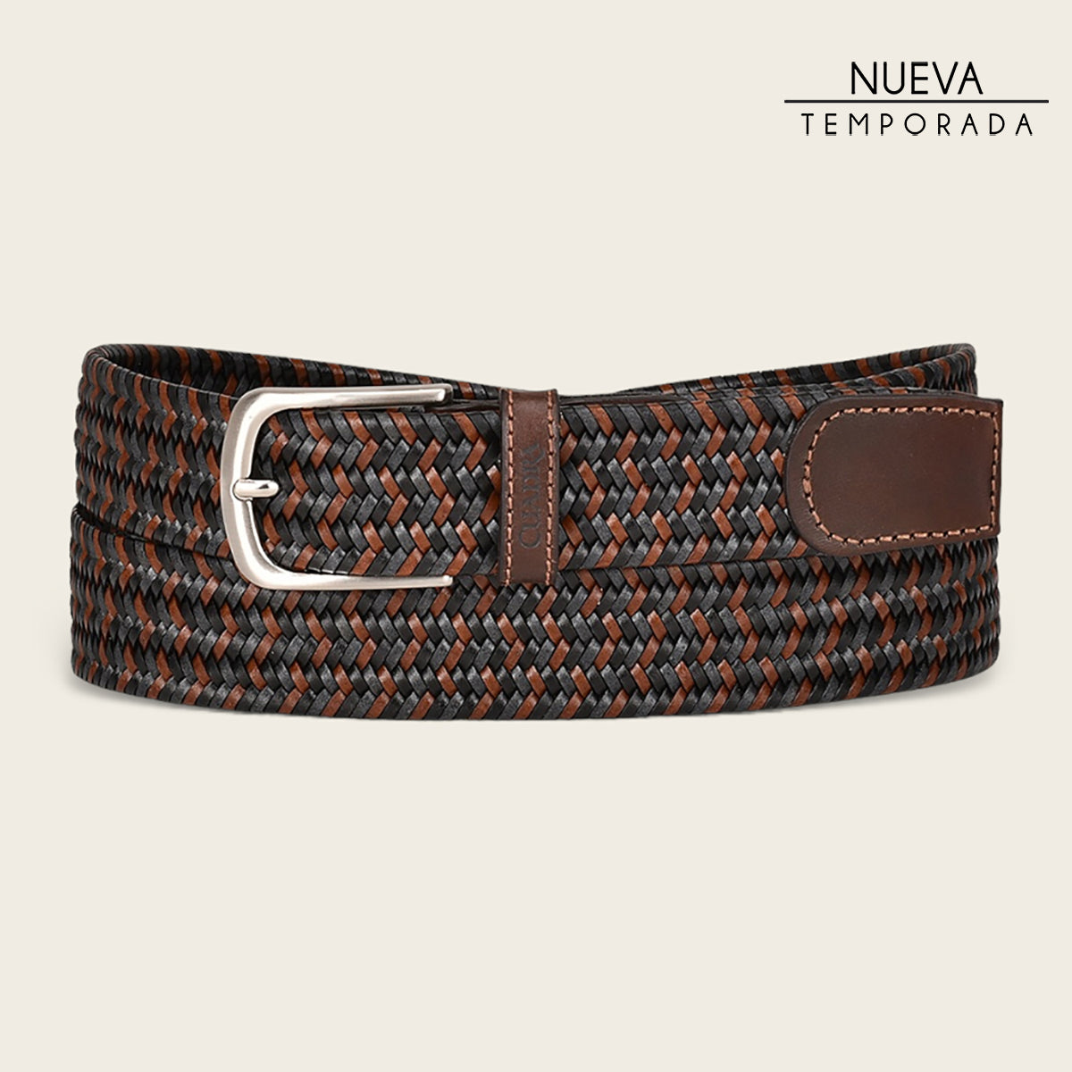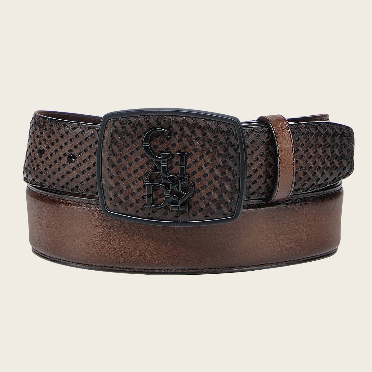 Cinturón casual tejido en piel genuina para caballero