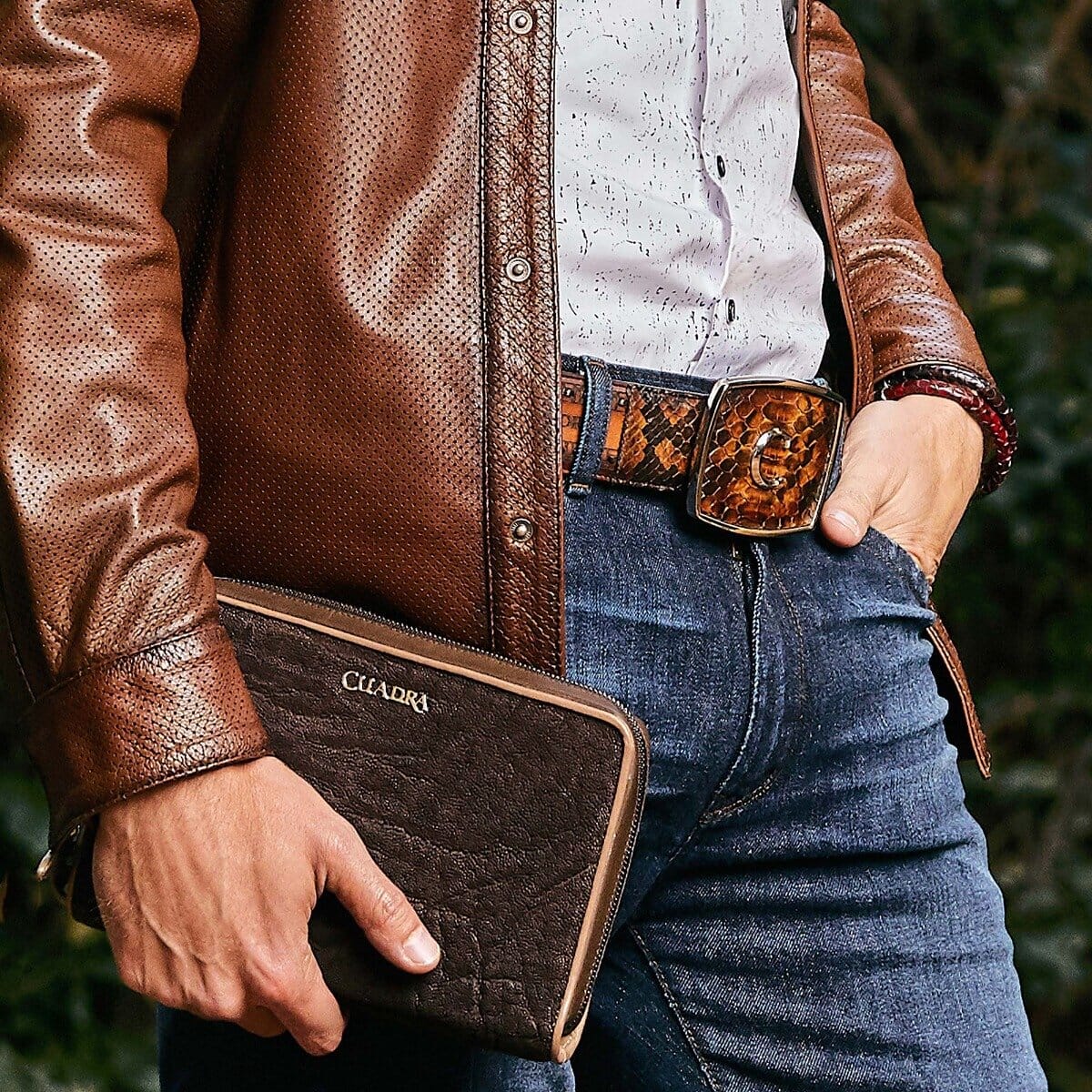 Cinturón vaquero para caballero en piel genuina