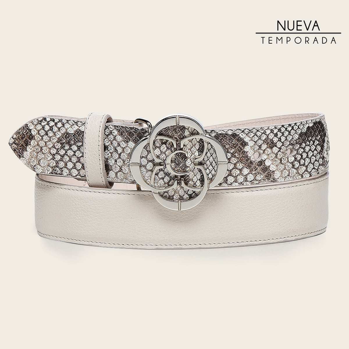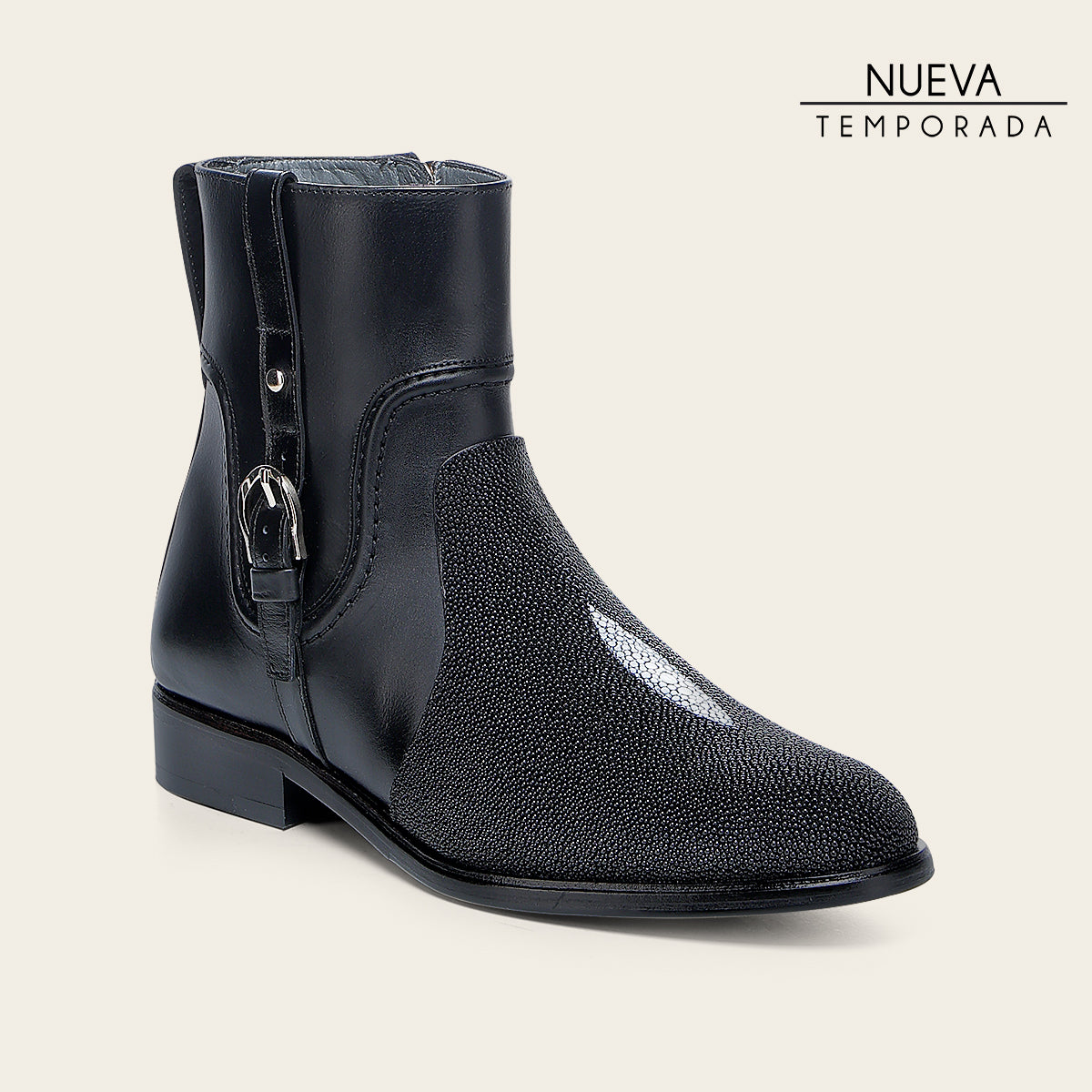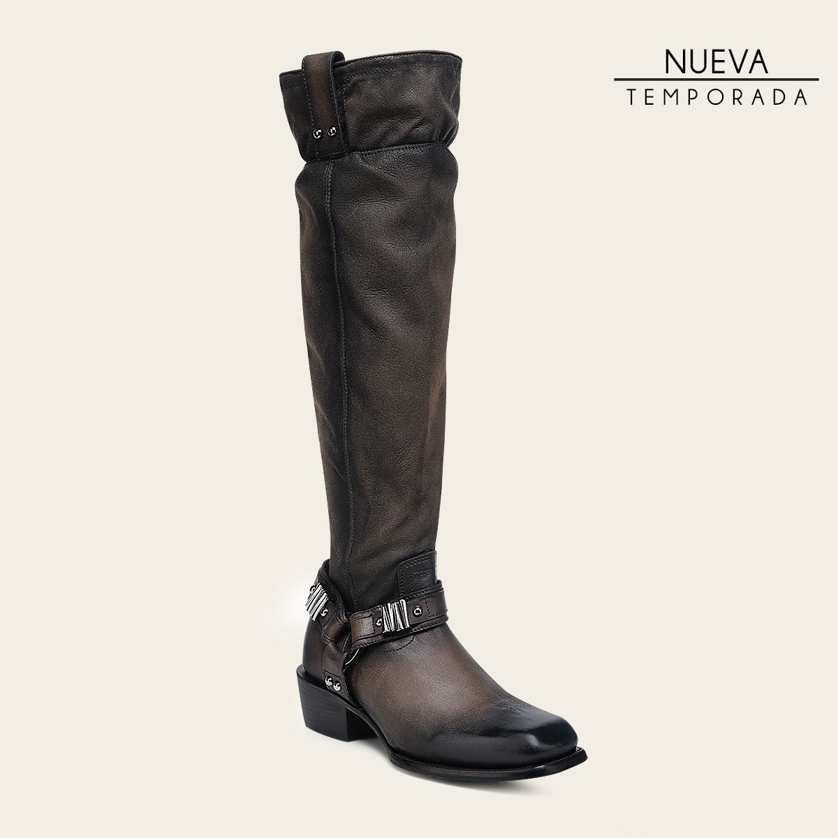 Bota estilo ecuestre en piel genuina de pitón para dama