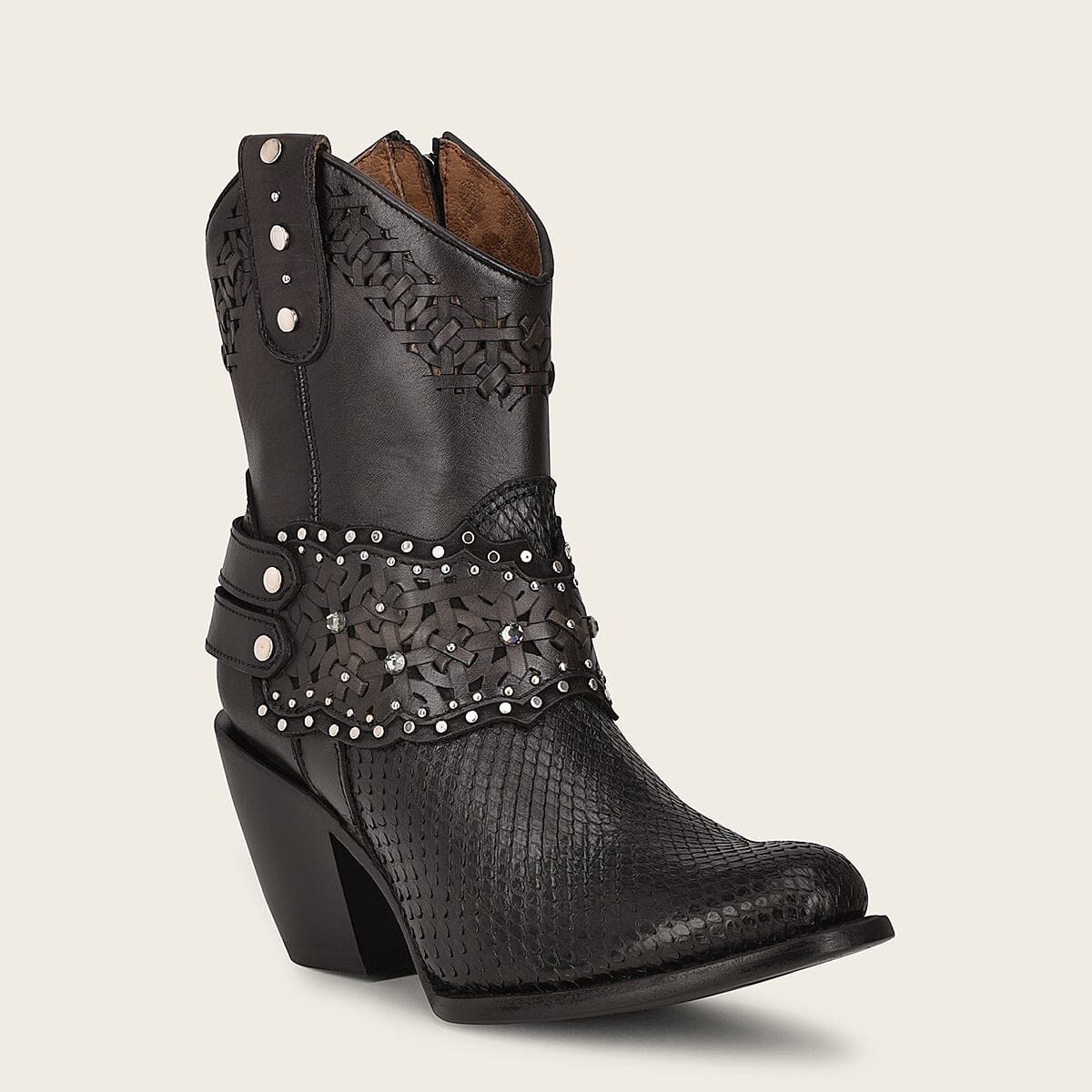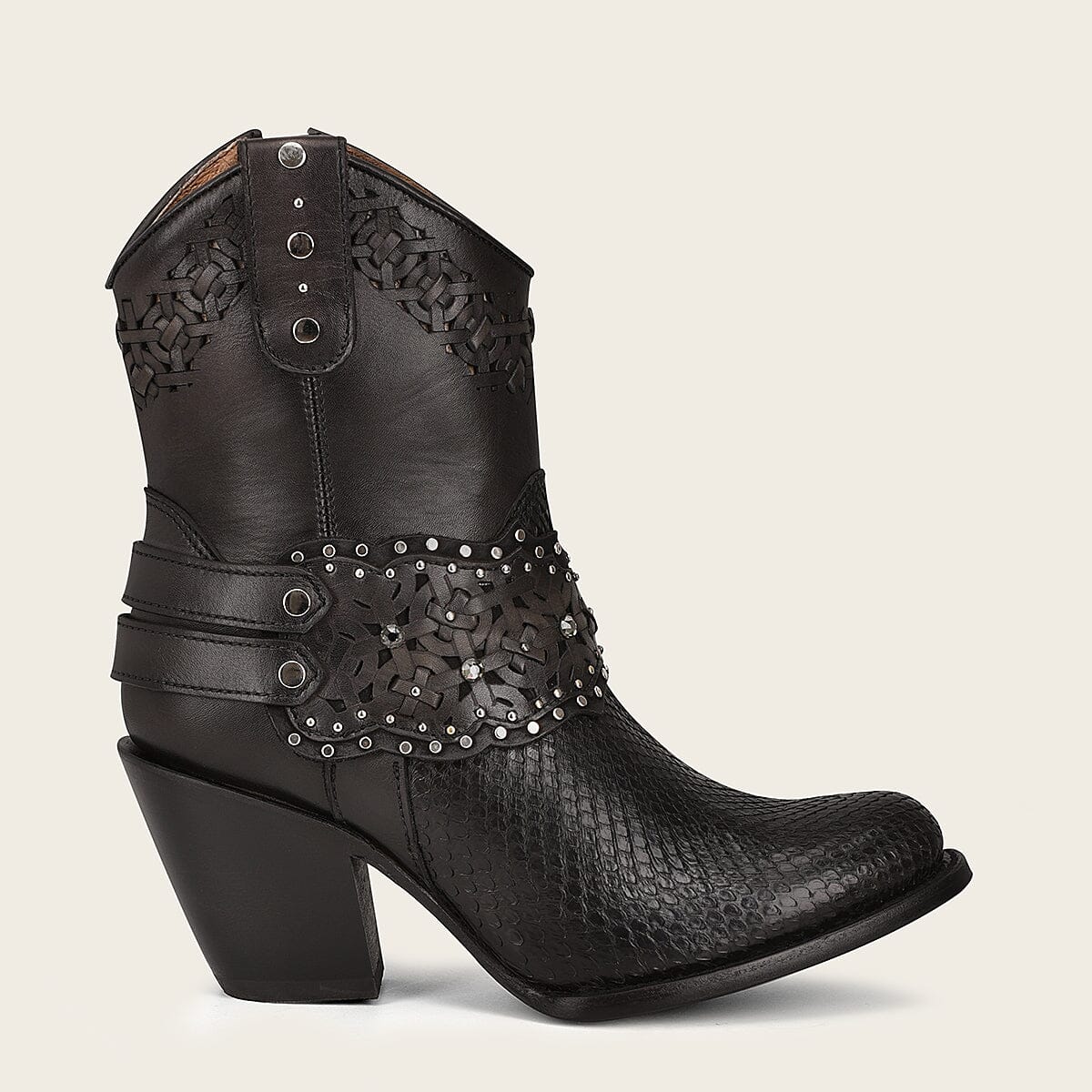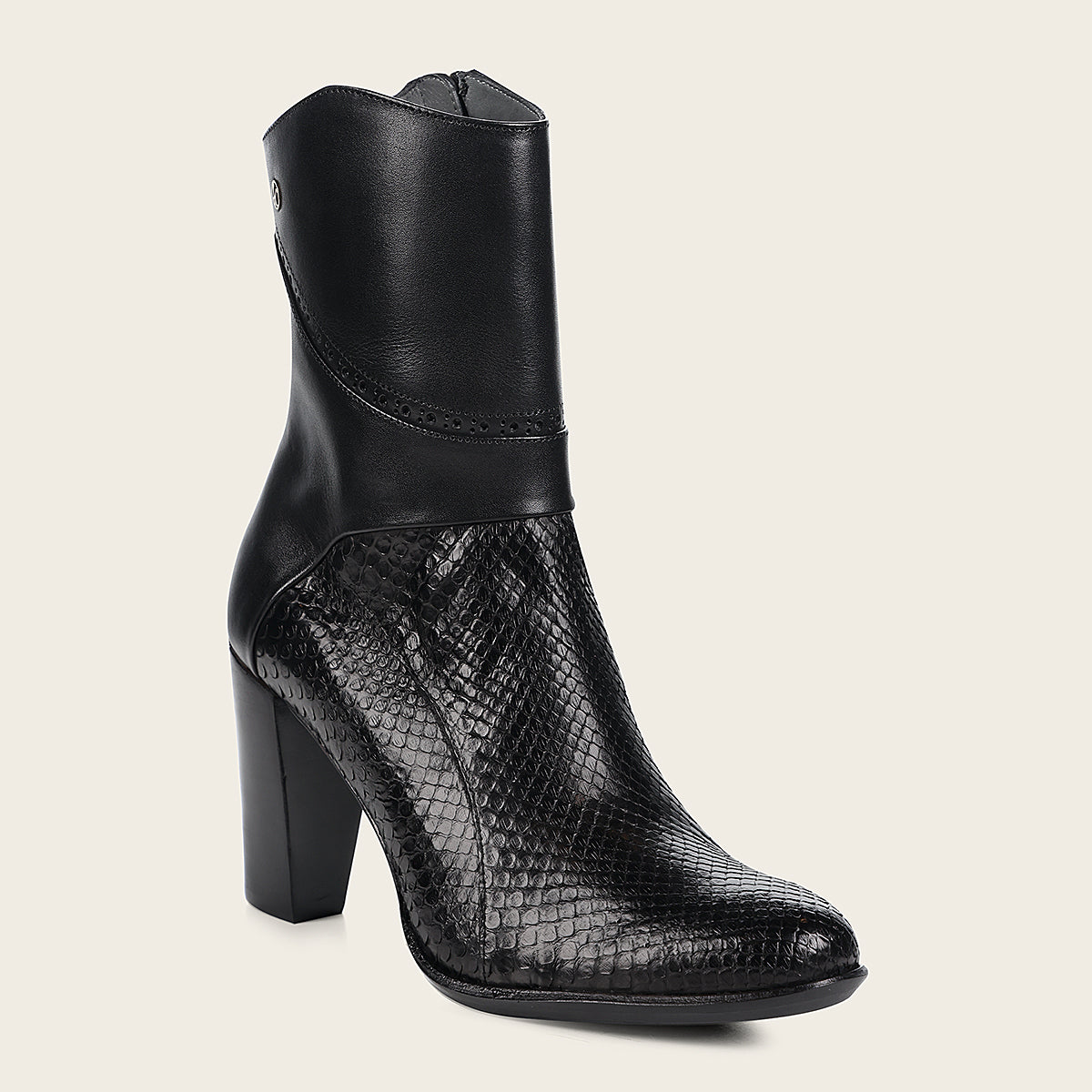 Botín de vestir en piel genuina de pitón para dama