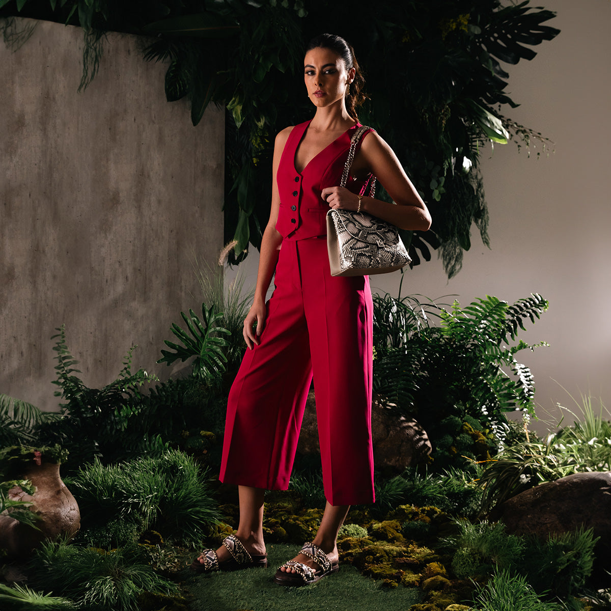 Sandalia en piel genuina de pitón para dama