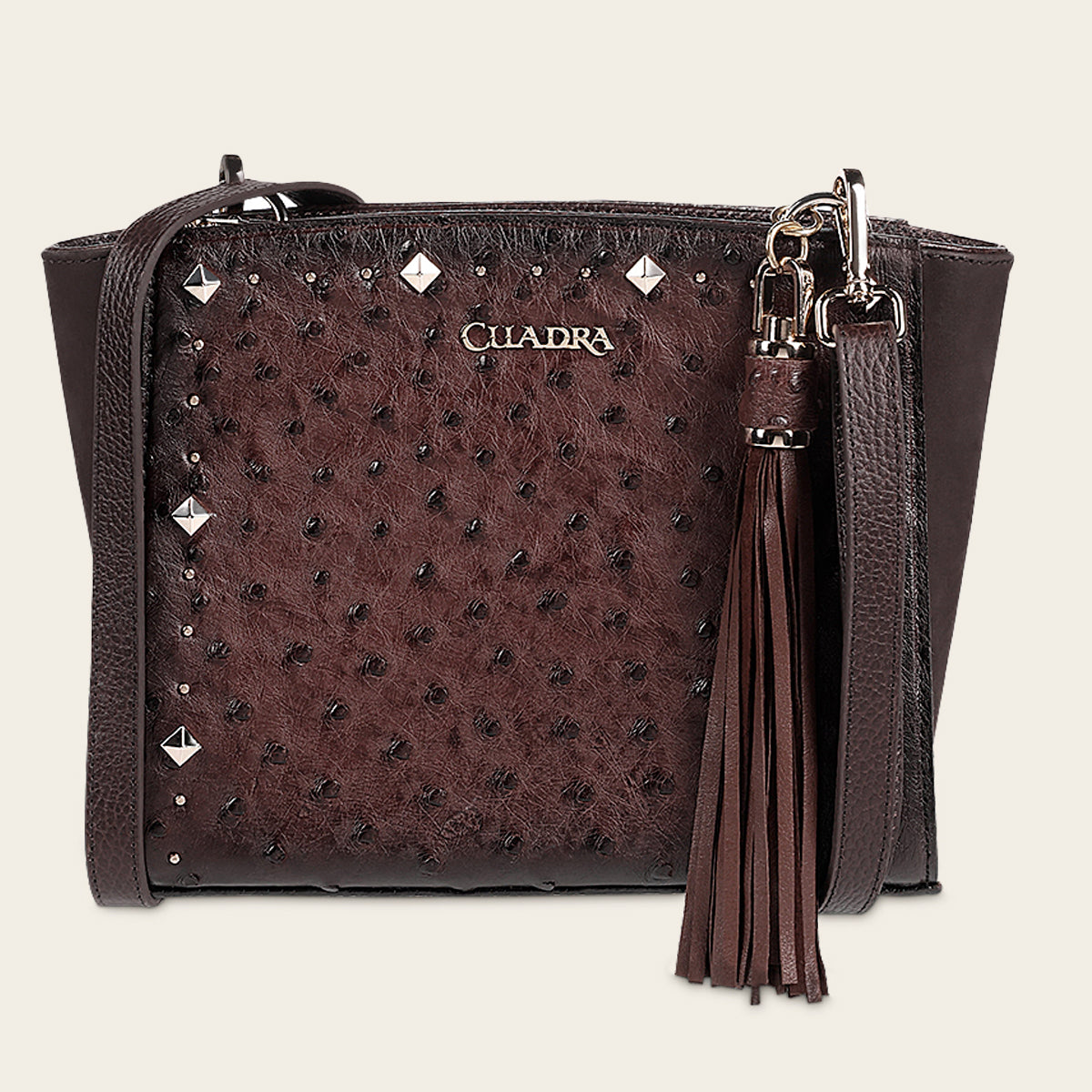 Crossbody en piel genuina de avestruz para dama