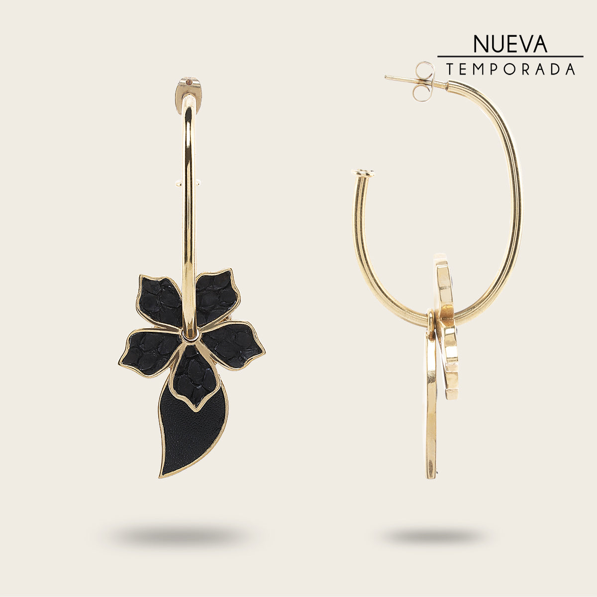 Aretes con baño de oro y piel de mantarraya