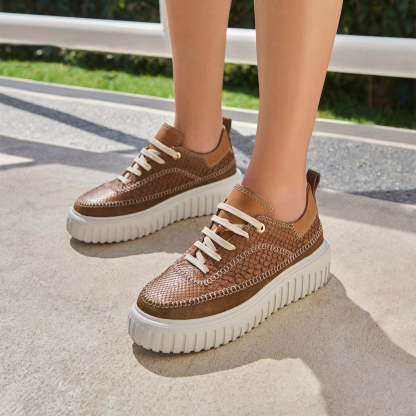 Tenis para dama en piel genuina de pitón y piel de bovino. Presenta piel de pitón enmarcada con tejido en contraste de color. Ajustados con agujetas.