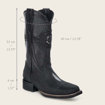 Bota de rodeo en piel genuina de mantarraya para caballero