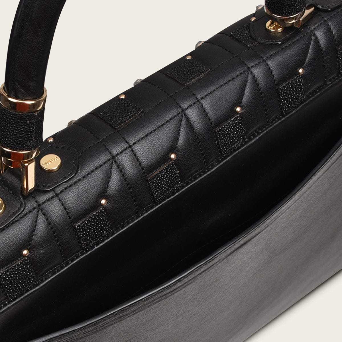 Cuidado: No mojar. No exponer a luz directa por periodos prolongados de tiempo para evitar modificar el tono. No exponer a objetos filosos, no frotar con fuerza las aplicaciones de láser y bordado. No exponer a solventes. Mantenimiento: Limpiar con un paño ligeramente húmedo (con agua limpia) para quitar el polvo, dejar secar y frotar con esponja lustradora de piel para dar brillo