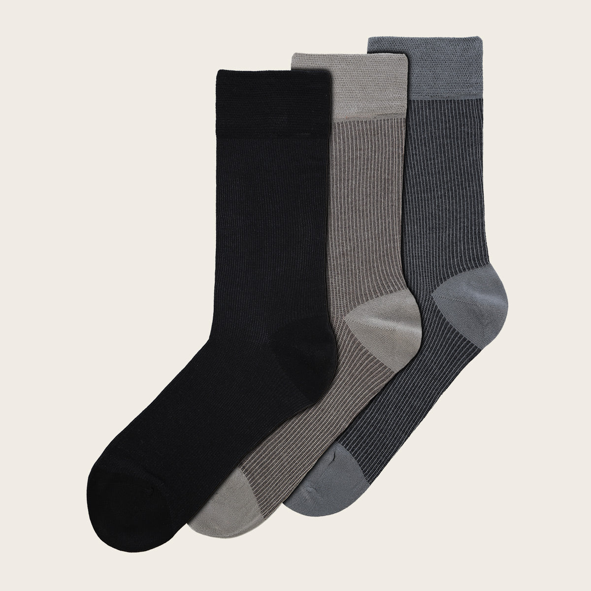 Calcetines Cuadra para caballero, presentan estampado en motivos geométricos. Paquete de 3 calcetines color gris, negro, beige