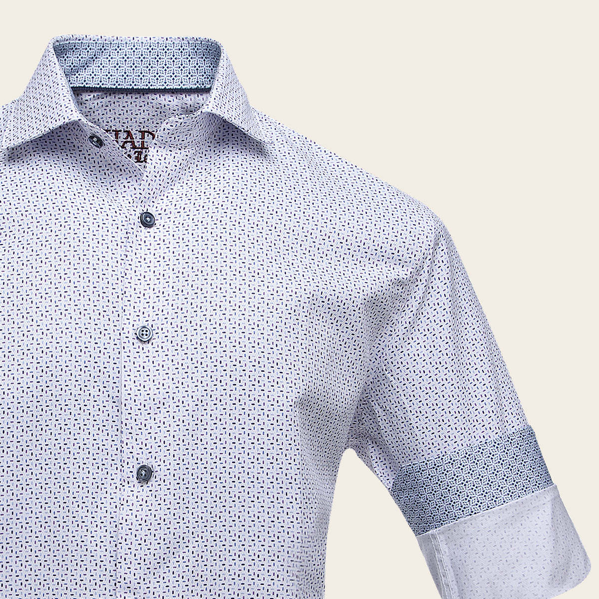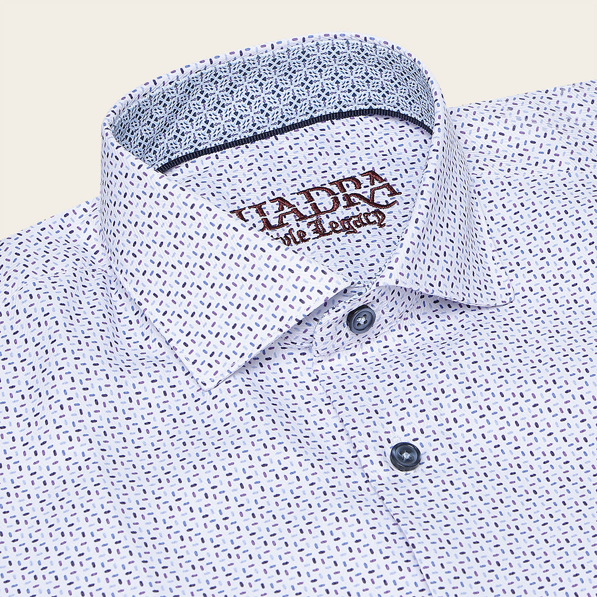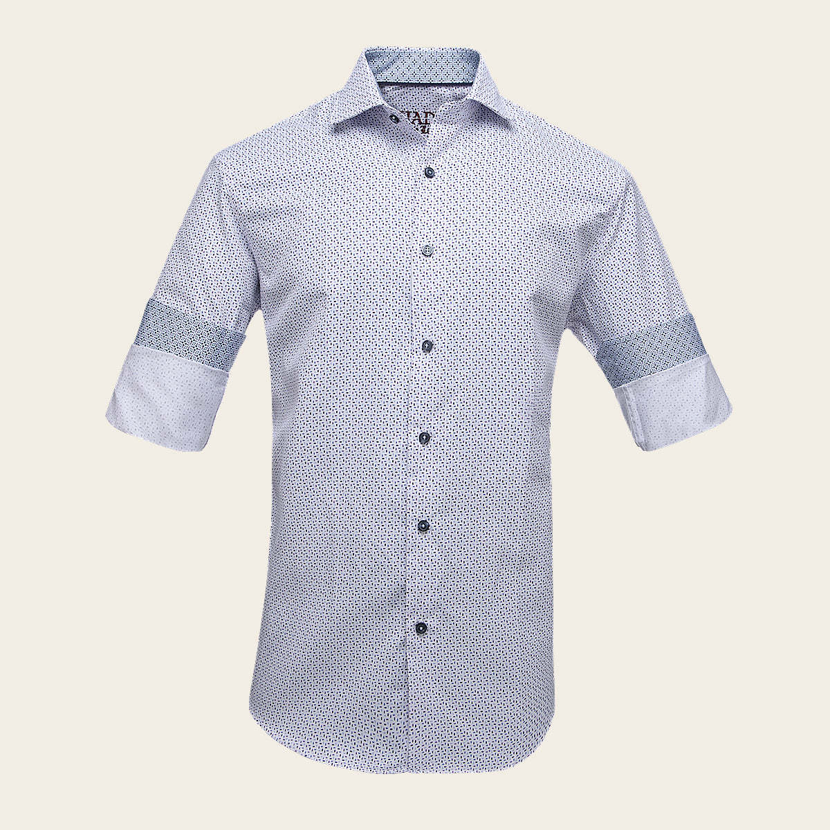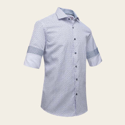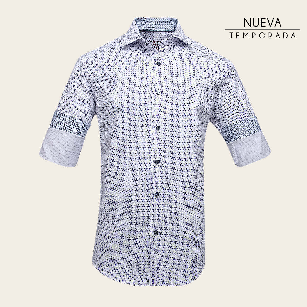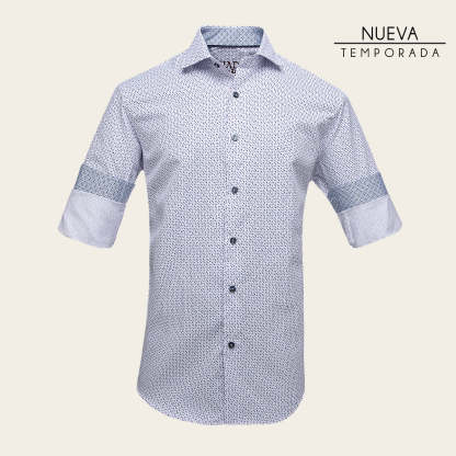 Camisa Cuadra para caballero. Presenta sutil  estampado en  contraste de color. Ajustada con botones al frente y en mangas.