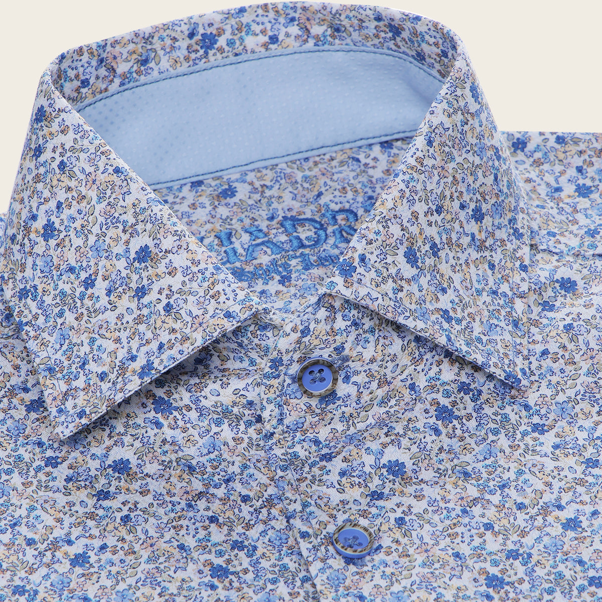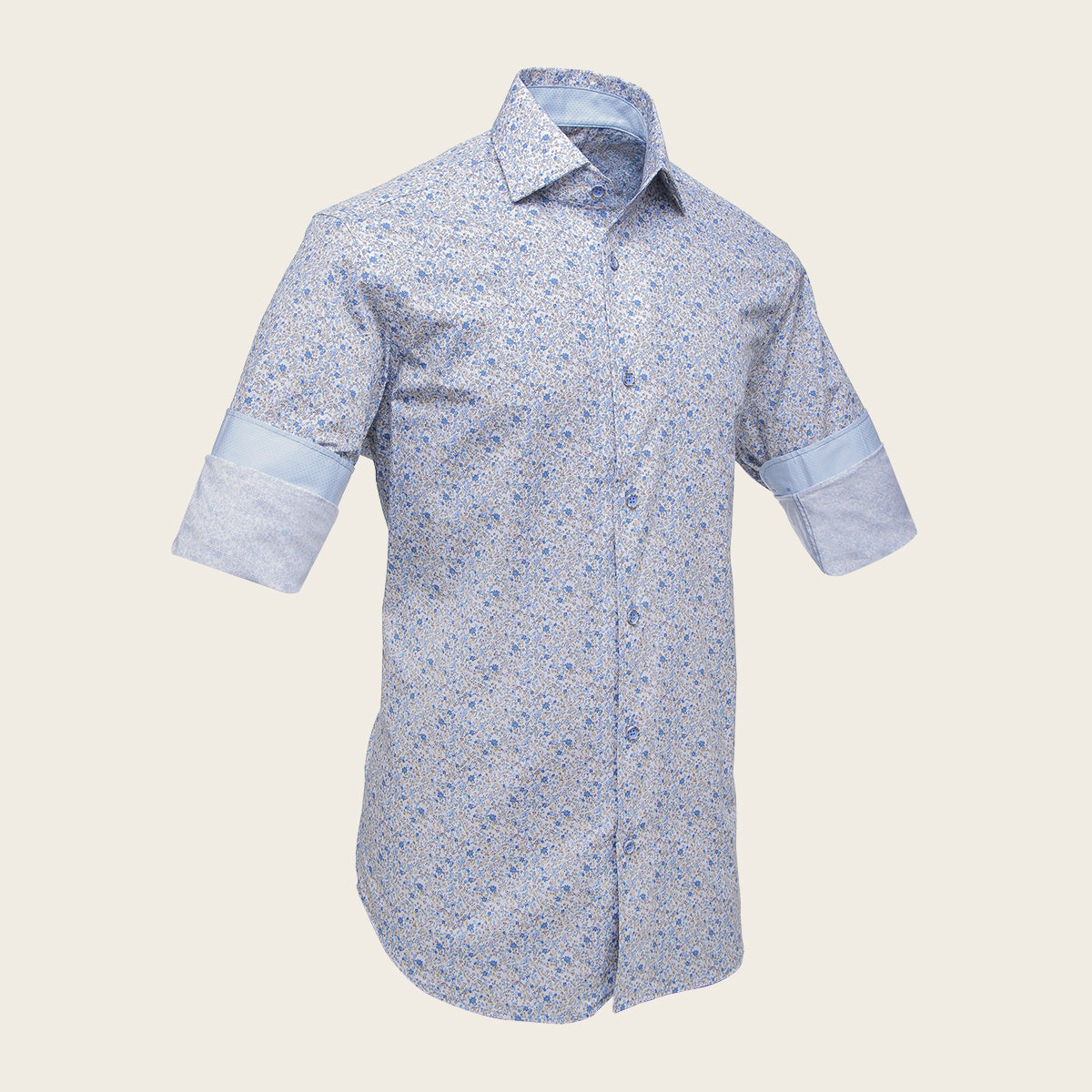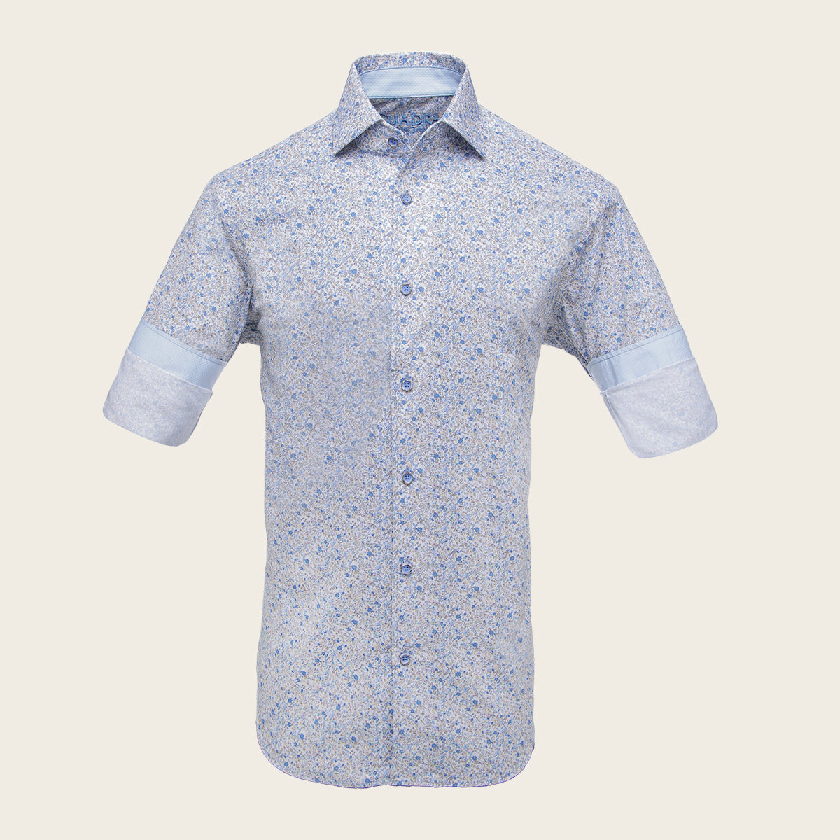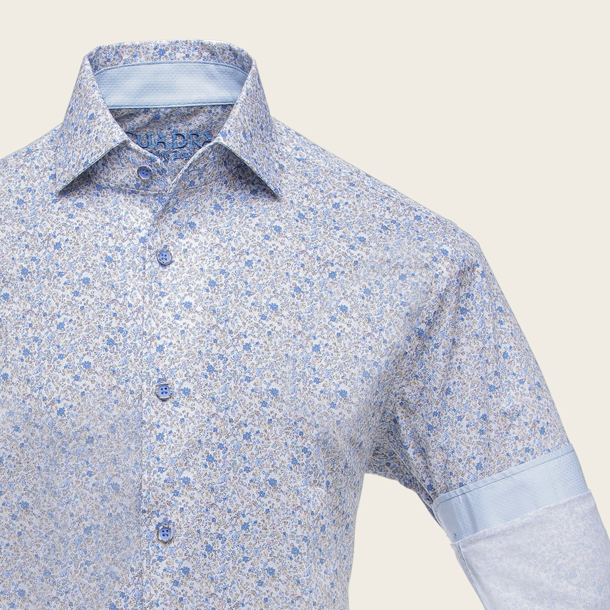 Camisa Cuadra para caballero. Presenta estampado en motivos orgánicos en colores contrastantes. Ajustado con botones en mangas y al frente. Con logotipo Cuadra bordado en la parte interna.