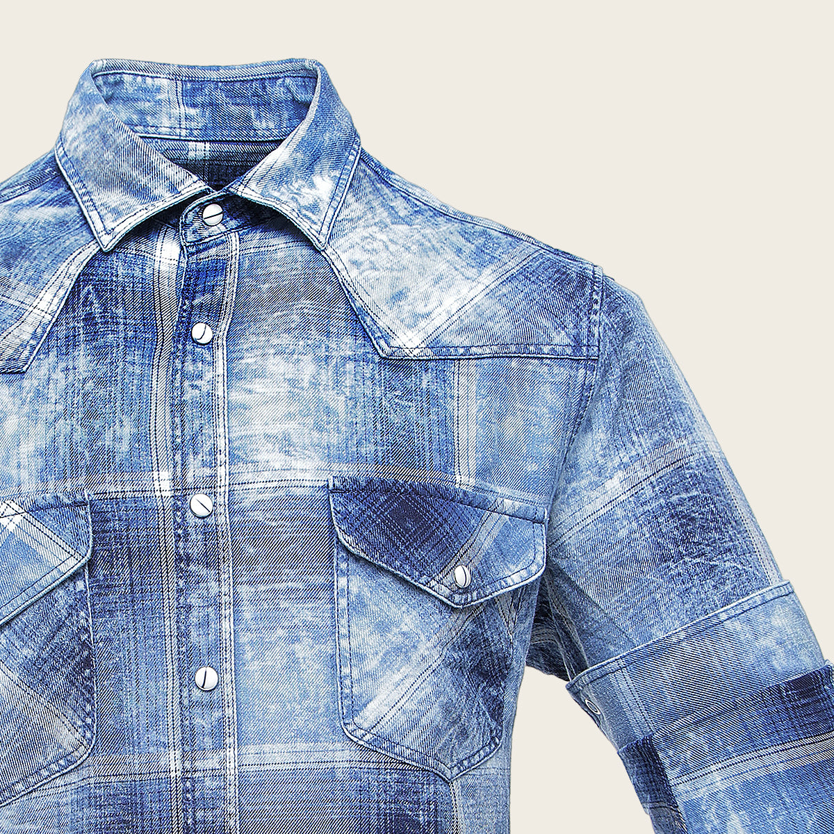 Camisa Cuadra para caballero. Presenta estampado de cuadros en contraste de color y dos bolsillos en pecho asegurados con broche. Ajuste con broches al frente y en mangas.  Con logotipo Cuadra bordado en la parte interna.