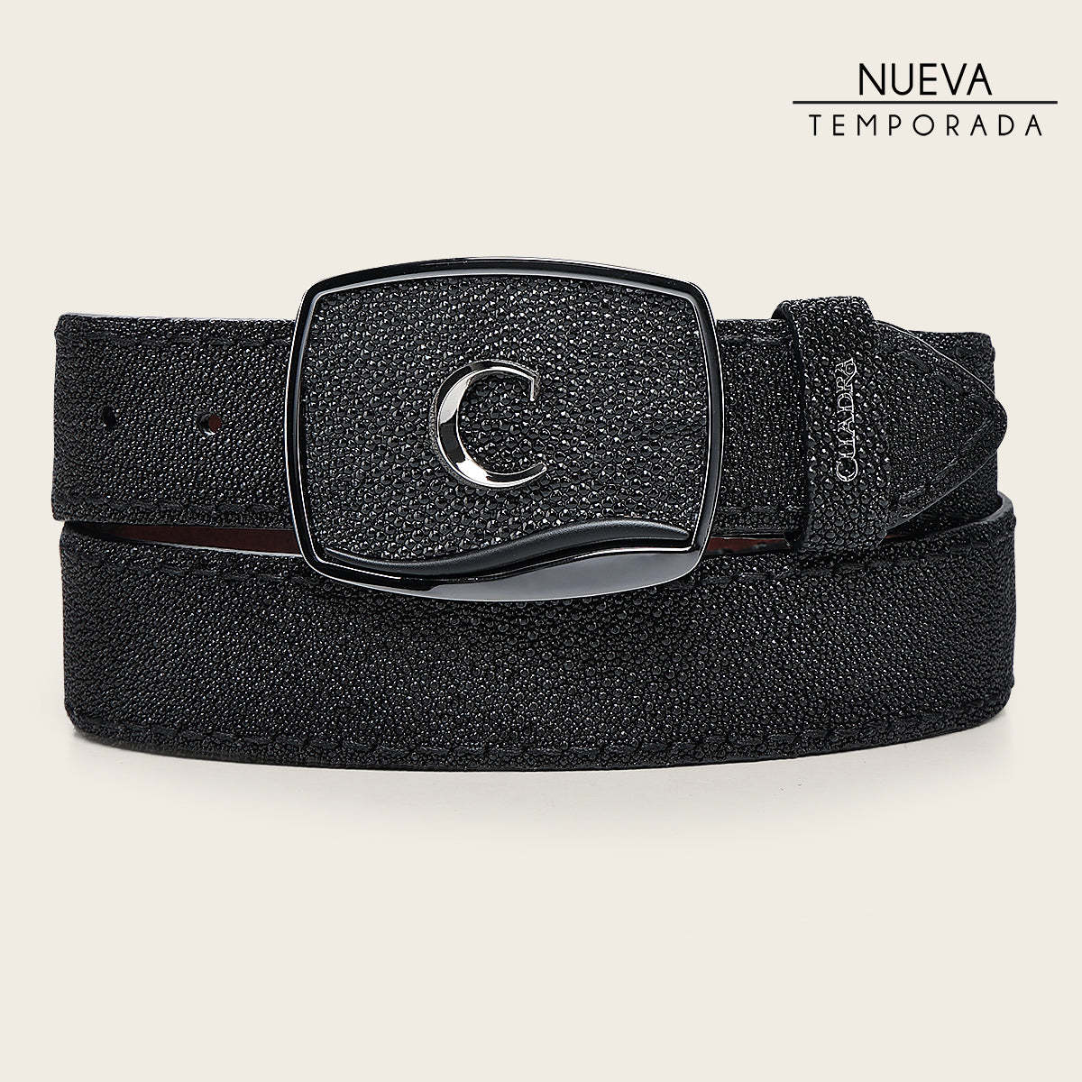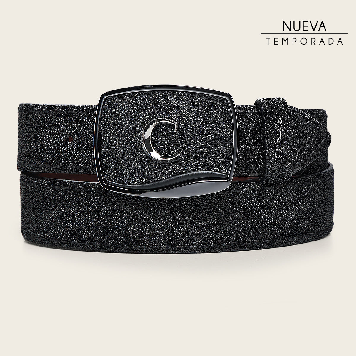 Cinturón vaquero en piel genuina de mantarraya para caballero