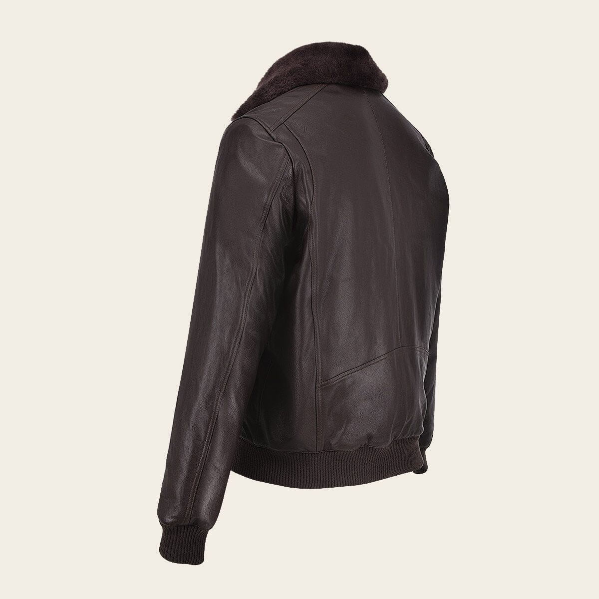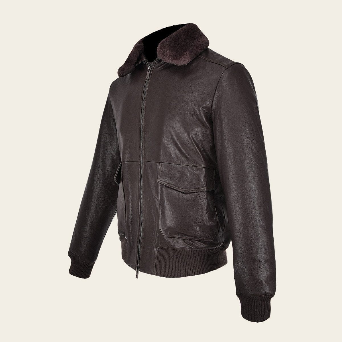 Chamarra en piel genuina con cuello de pelo