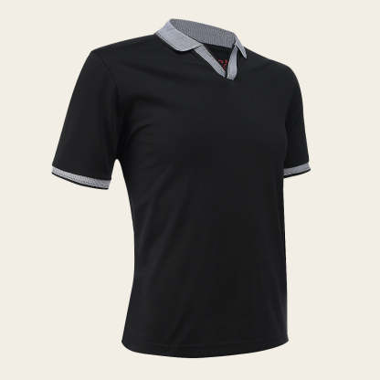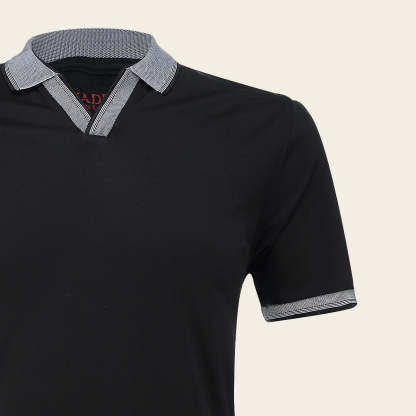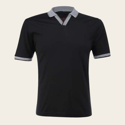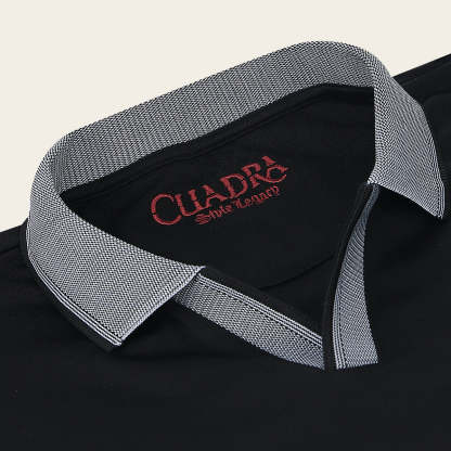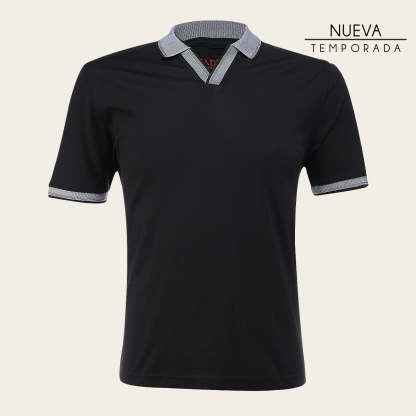 Playera tipo polo para caballero, el cuello y mangas presentan colores contrastantes con textura.