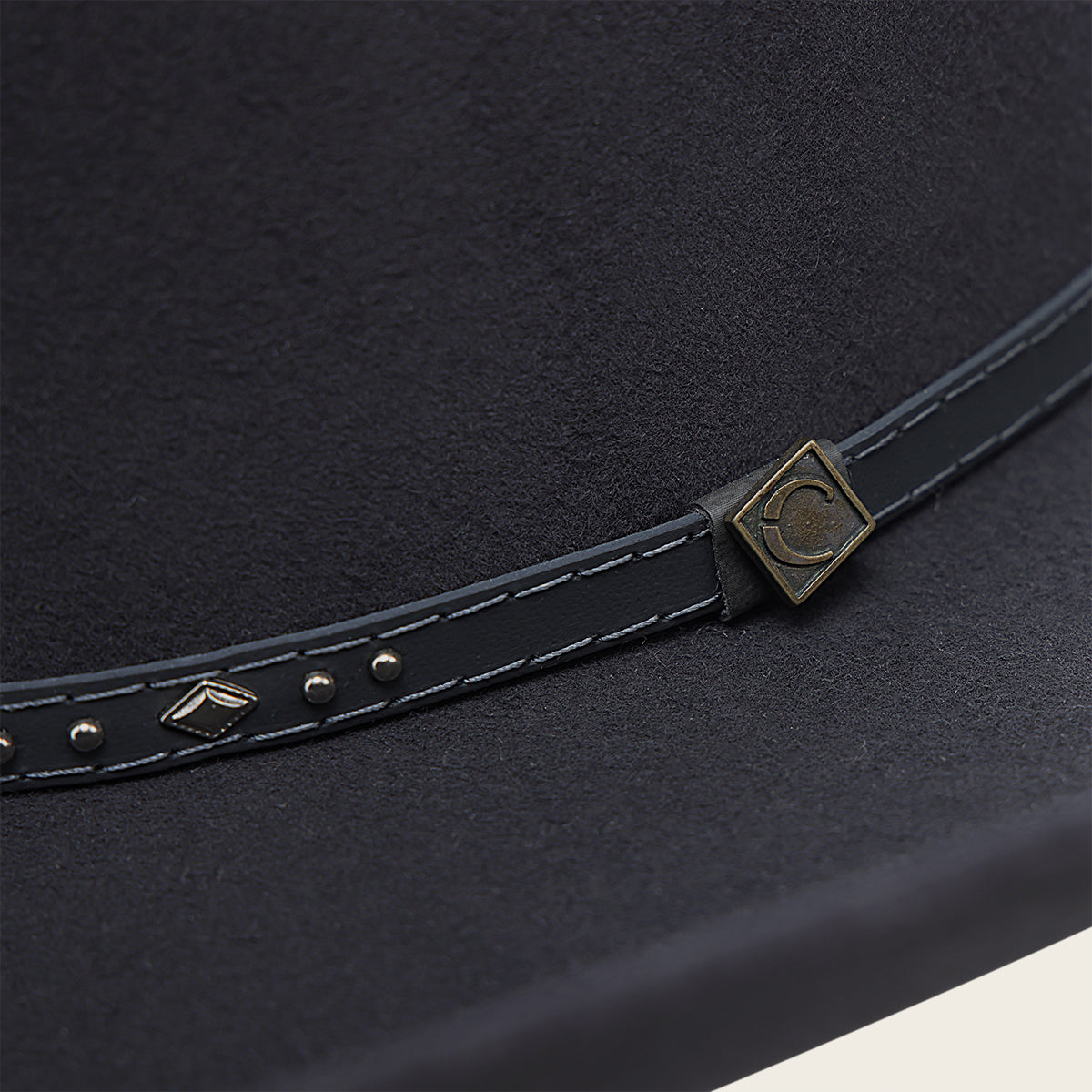 Sombrero de lana. Presenta ala de 4 pulgadas, toquilla en piel genuina de bovino con estoperoles. Con forro de satín y tafilete en Drylex para control de la humedad.
